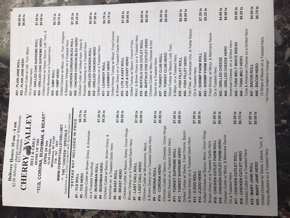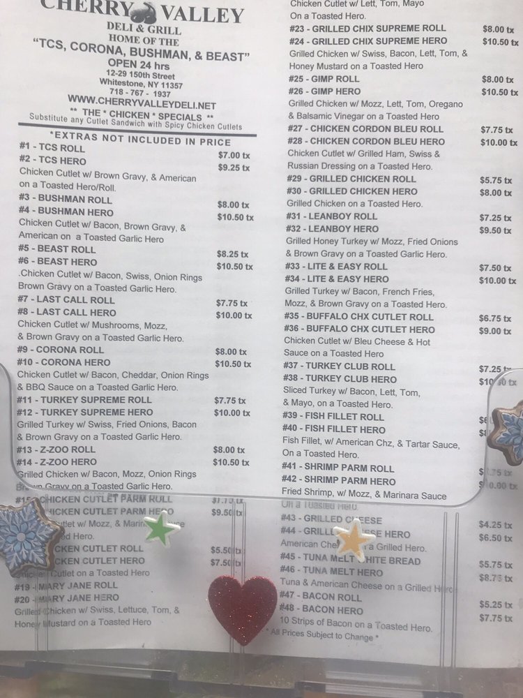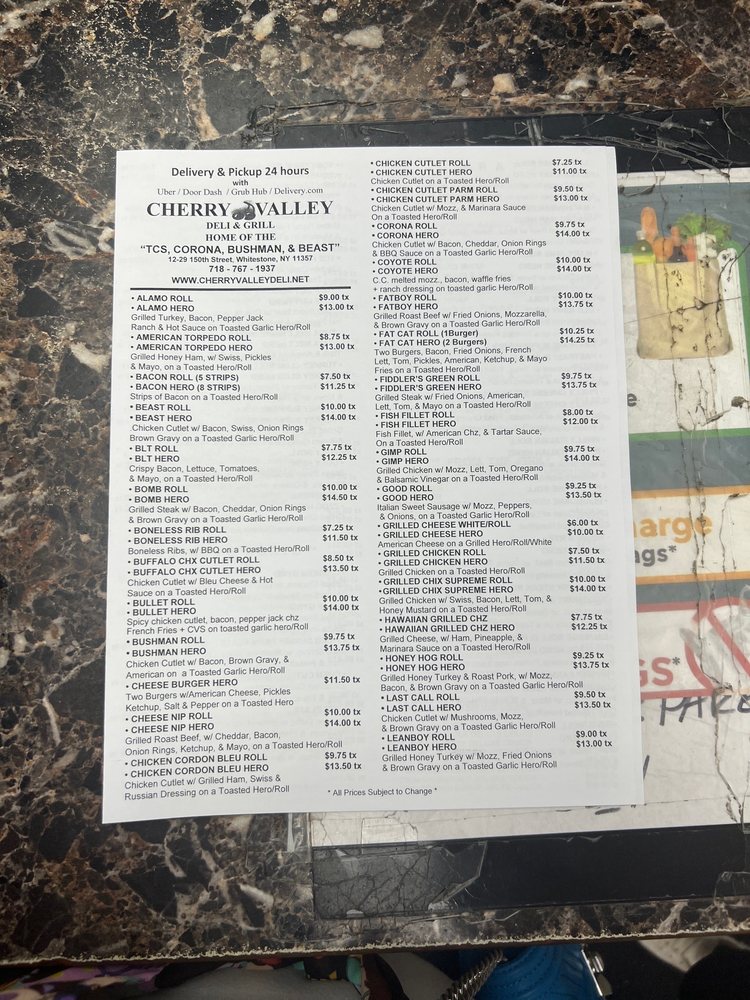 Cherry Valley Deli is a beloved spot in Queens known for its variety of original sandwiches and wraps. The menu caters to diverse preferences with options like small waffle couches, loaded mullet fries, and hearty breakfast heroes. Customers rave about the quality of food and the quick service, making it a go-to destination for locals and sandwich lovers. The deli offers delivery, takeout, and catering services, making it convenient for any occasion. The atmosphere is casual with outdoor seating available, perfect for enjoying a meal on a nice day. From classic favorites like turkey and swiss on a hero to unique creations like the bomb on a hero, Cherry Valley Deli offers a satisfying dining experience worth revisiting. Next time you're in Whitestone, NY, stop by Cherry Valley Deli for a taste of their gooey goodness and flavorful sandwiches.